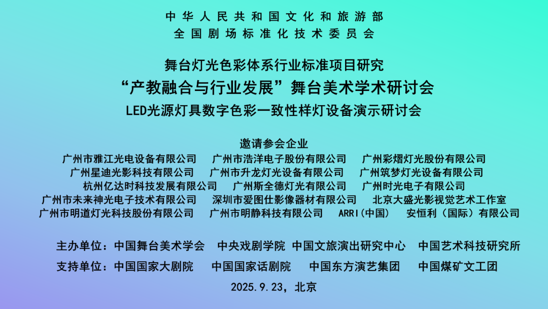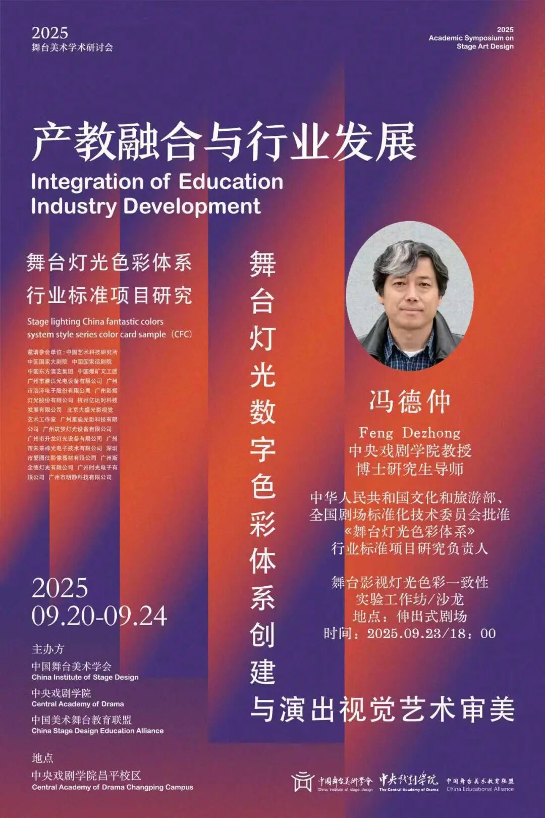 9月23日,“舞台灯光数字色彩体系创建与演出视觉艺术审美”专题研讨会于中央戏剧学院伸出式剧场举行,由中央戏剧学院灯光专业博士研究生导师冯德仲教授和中国艺术科技研究所任喆工程师担任主讲,2025级博士研究生汪宇担任学术研讨主持。会议汇聚院校、科研机构及产业代表,围绕中华人民共和国文化和旅游部批准立项研究的中国《舞台灯光色彩体系》行业标准项目为主题,暨“中国风采系列(181光源色) ”色卡和测试规范与产业化路径展开讨论,同时提前与大家共同见证分享《舞台灯光色彩体系》的研究成果。该项目旨在创建具有中国文化内涵的数字色彩标准,实现舞台影视灯具光源色彩质量的一致性管理,为演出艺术应用、专业技术教学和人才培养及舞台影视灯具数字控制设备研发制造和数字智能多媒体应用提供权威规范与专业参考。推动舞台灯光行业标准化进程和技术创新以及色彩艺术表达的多元化发展具有里程碑式的划时代意义,同时也是向此次“产教融合与行业发展——2025舞台美术学术研讨会”活动的献礼。