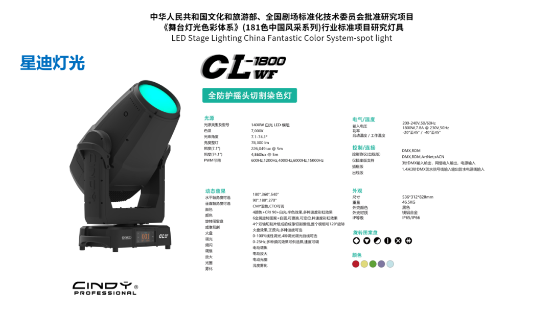 星迪公司在舞台灯光应用产品中采用高品质光源和新技术,在LED灯具色域覆盖范围具有优势,同时也期待《舞台灯光色彩体系》项目的尽早发布,以推动数字舞台灯具中国制造产品技术的迭代更新,期望通过规范的色彩管理与算法改进提高,实现尽可能丰富的色域范围,以支持中国数字色彩CFC系列标准体系的实现。
