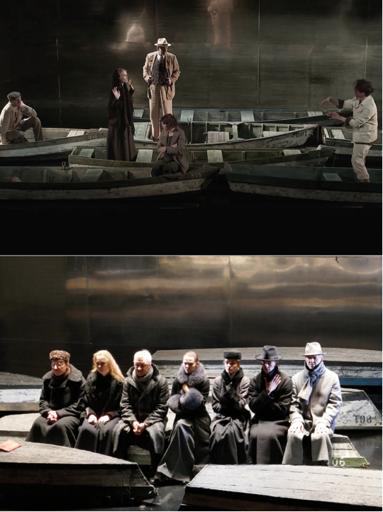 下半场中,充满希望和爆发炙热感情的夏日,被无望的冬天所取代,散发出宇宙般的寒冷。这些船被倒置过来,看上去就像墓碑,或是逝去的青春和愚蠢的希望的纪念碑。约翰·施特劳斯的《蓝色多瑙河》音乐主题似乎在弥补湖水景观的缺失。演员模仿管弦乐队各个声部演唱,以副歌形式贯穿整个演出,仿佛将一场视觉上节制但美丽的表演弥合在一起……。