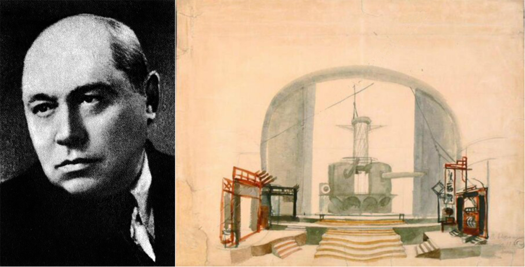费奥多罗夫是梅耶荷德的学生,他设计的《怒吼吧,中国!》非常有名,右边这张就是这部剧的设计图。