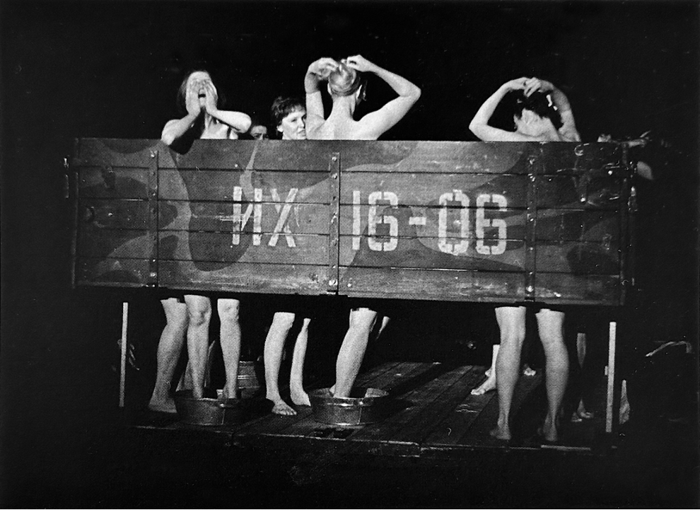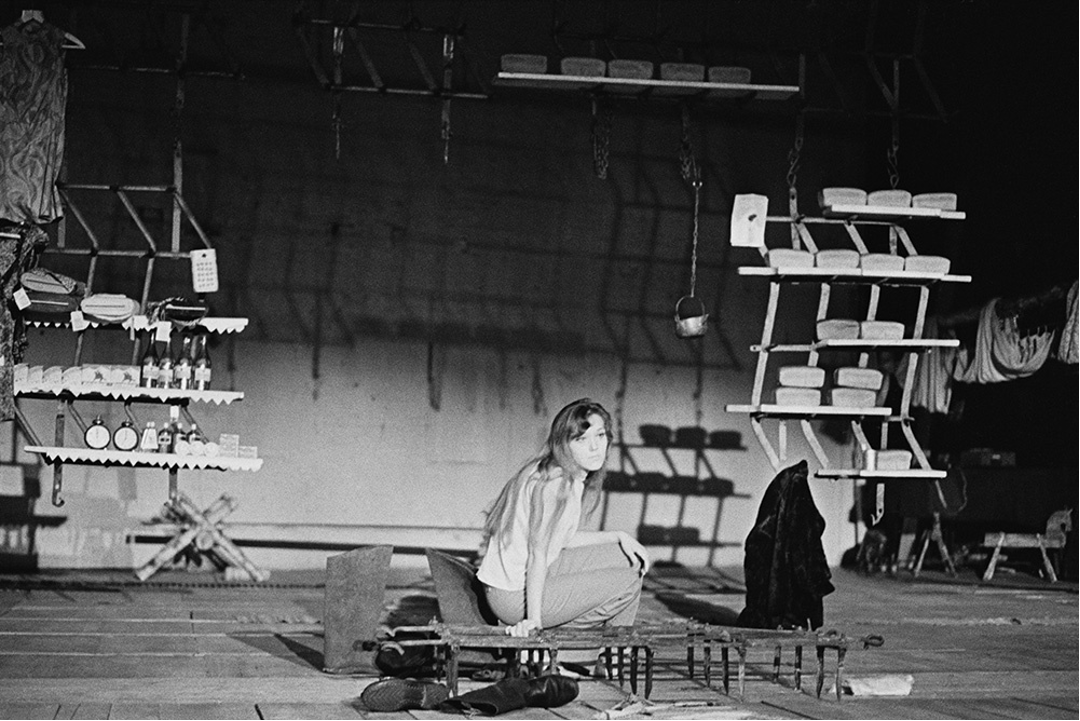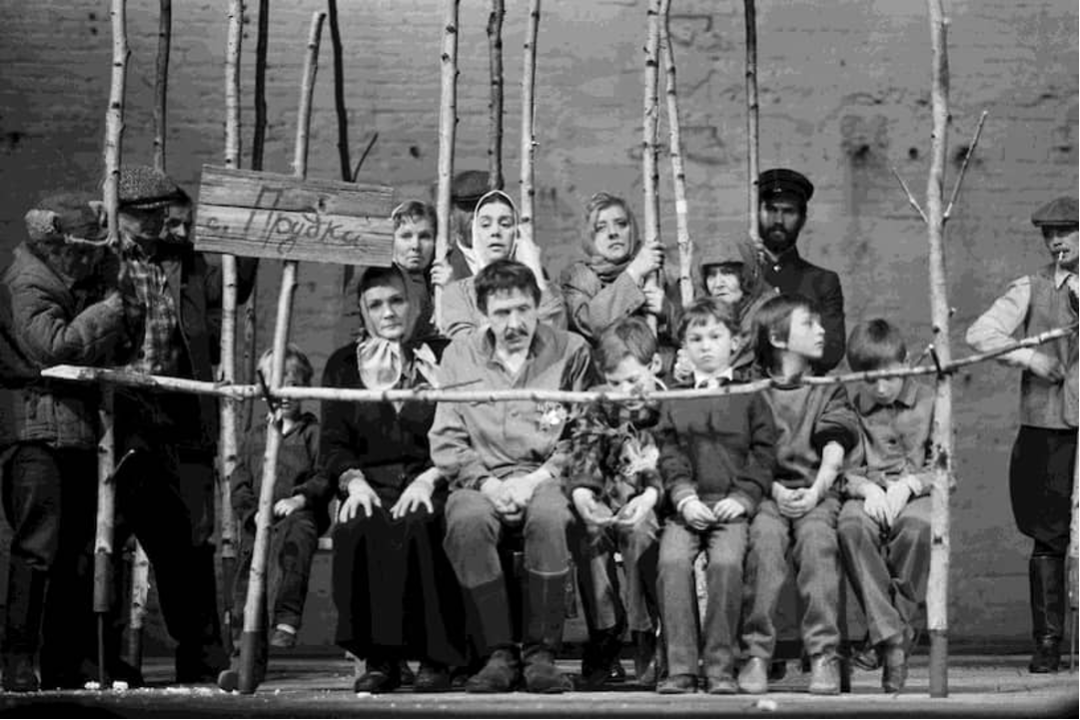 《木马》这部戏反映了三代年龄不同的农村妇女的生活,最终是个悲剧。为了筹备这部剧,父亲特地去了一趟俄罗斯北方的农村,他们带了很多伏特加,用酒跟当地农民换了很多农具。这些农具被运回莫斯科,并成为舞台上的布景。舞台上最重要的布景元素是犁耙,它既可以成为货架,进行售卖;又因为有尖尖的齿,特别像一个中世纪的刑具。