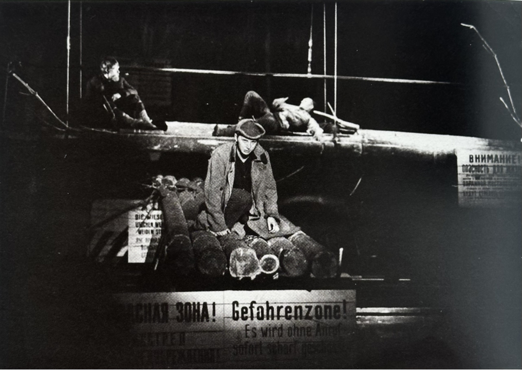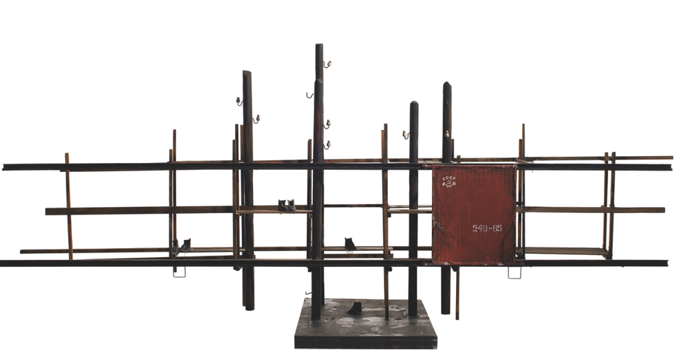 此剧舞台装置就像把铁路沿线的电杆跟铁轨跟车厢合在一起的结构。实际上是把空间距离给压缩了,把本来不应该挤在一起的东西给挤在一起了。