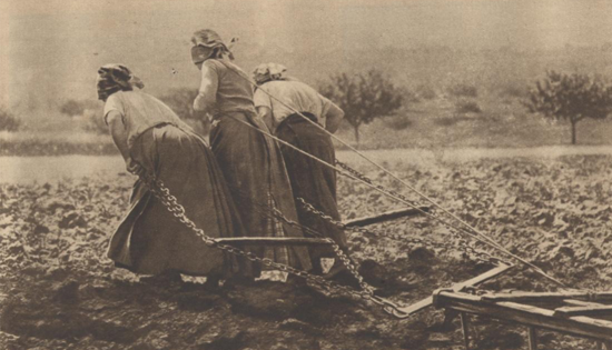 这张图说明当时的社会环境,农民连牲畜都没有,只剩他们自己,甚至只有女人去犁地。