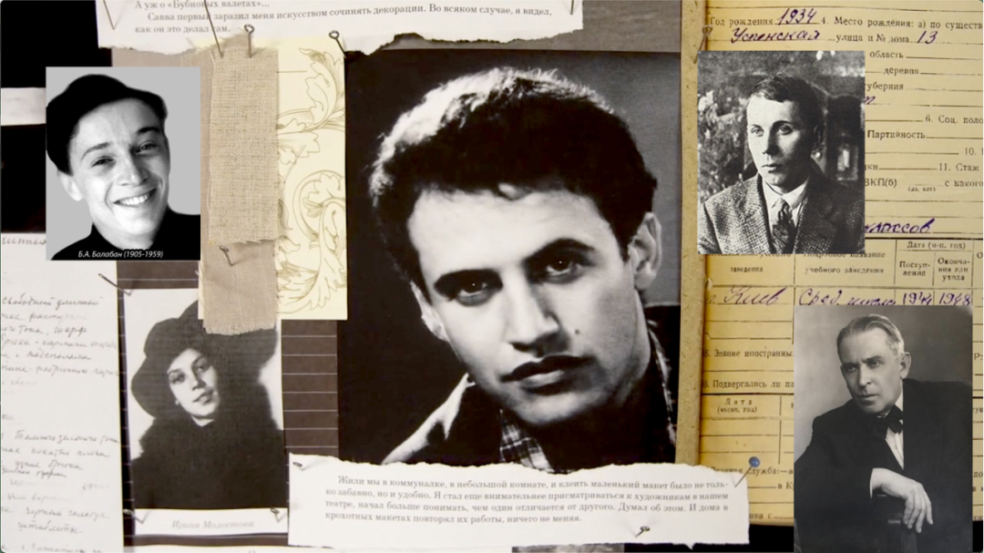 在父亲的从业生涯中,他遇到了很多重要的人。比如22岁的时候,父亲的设计方案得到了莫洛斯托娃的赏识,并且从《长着飞毛腿的谎言》这部剧目开始了两人的合作。