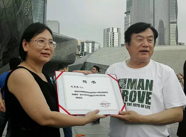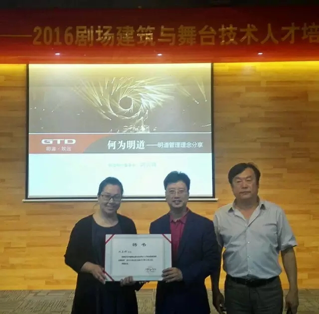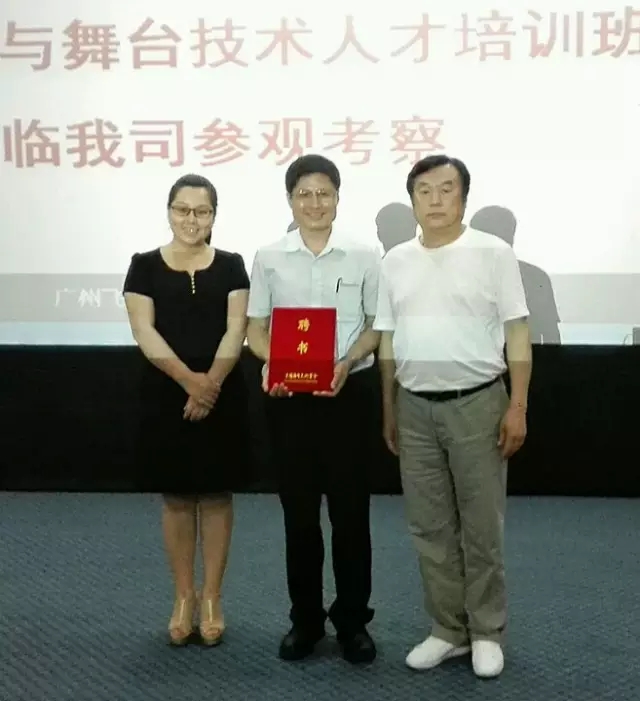▲为广州大剧院舞台技术部主任刘建臻颁发聘书