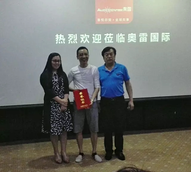 ▲中国舞台美术学会音响专业委员会主任韩宏志(左)广东省舞台美术研究会梁溪清会长(中)广东省舞台美术研究会秘书长兼办公室主任李勇(右)