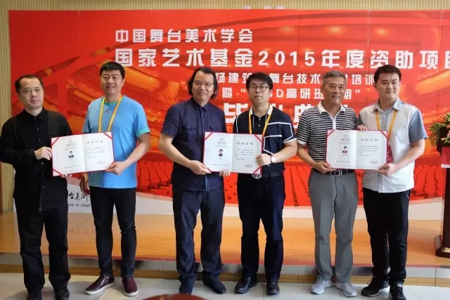 会长曹林、副秘书长兼剧场建筑与舞台技术委员会主任马路、音响专业委员会主任韩宏志为优秀学员孙啸、王光伍、王霄颁发证书。