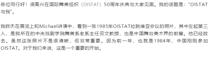 刘杏林:在OISTAT50周年庆典全球交流论坛上的发言