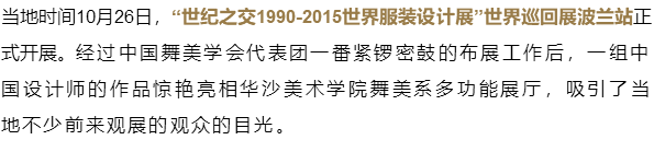 厉害了!世纪之交世界戏剧服装巡回展中国设计师作品亮相波兰