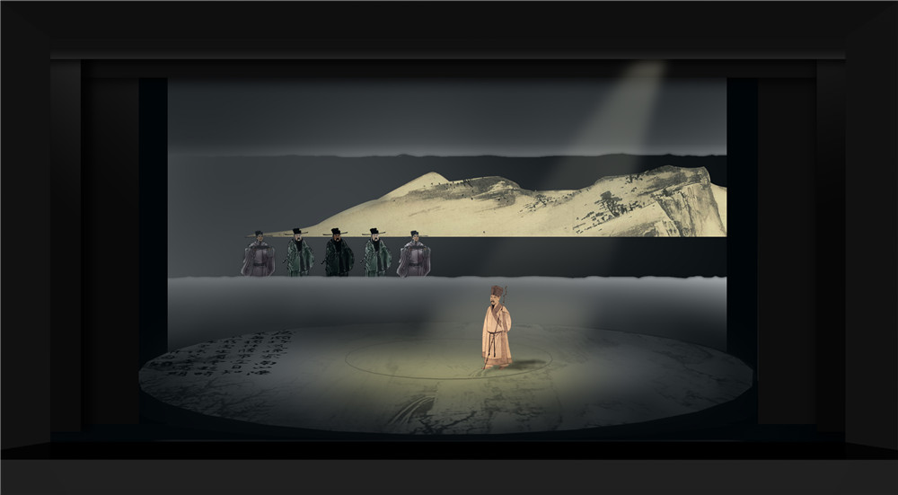 The stage of the drama "Su Dongpo" takes a turntable with a slope as the basic performing space, which indicates that Su Dongpo has been tossing and turning all his life. A bullock cart is a prop throughout the play. Su Shi's name is related to the car, and is also a portrayal of his character and life. Dynamic projection, combination of environmental image and turntable. Using dry boat and drama virtual action to show Wang Anshi riding donkey and Jiangsu Dongpo rowing. Through the scene changes of Huzhou, Huangzhou, Beijing, Huizhou, Danzhou and so on, it reflects the footprints of Su Dongpo's exile life. Finally, Su Shi's calligraphy of "Niannujiao" and "going east of the Yangtze River" is the summary of his life and spirit.