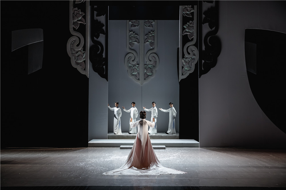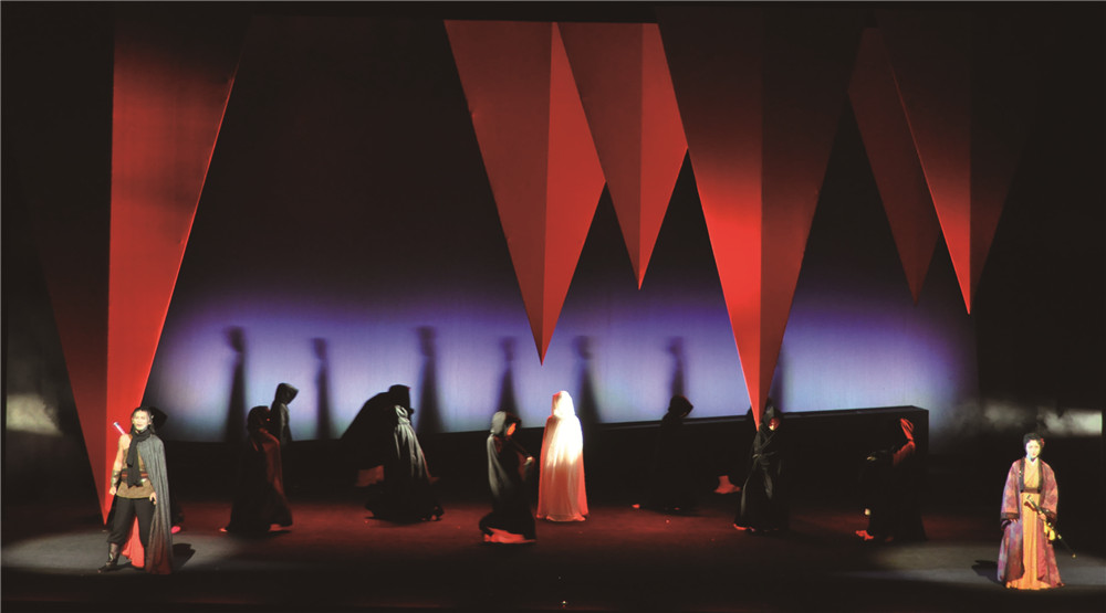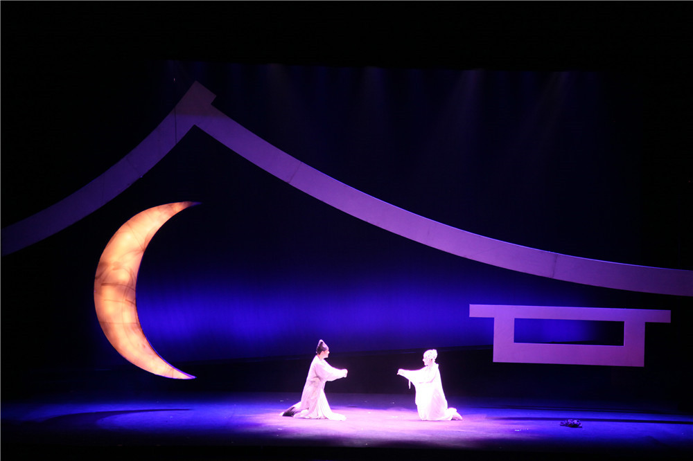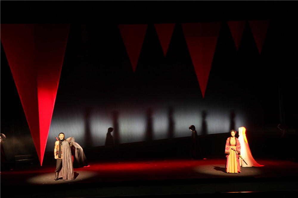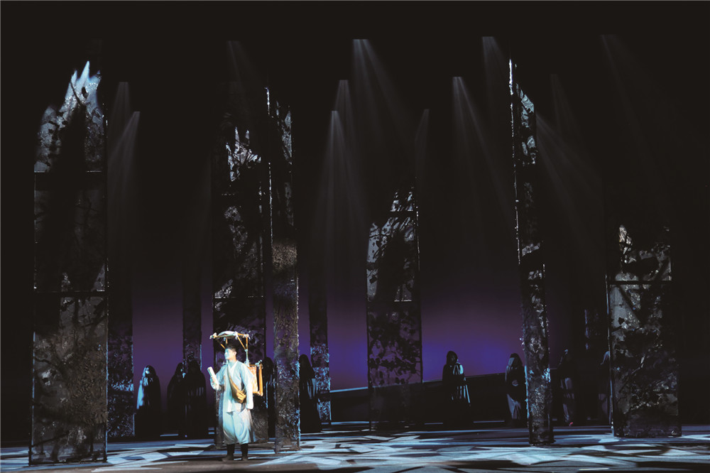 Presenting Chinese classical literature in the form of musicals, performing beautiful and ghostly love stories, singing classical romance in a modern way. This play is adapted from the Chinese classical novel "Liao Zhai". A female ghost loves the young man. I want to go to the life and death covenant forever together. In the end, the ghost and the young man are separated by two world. Reinterpreting the classic literature more than three hundred years ago from the perspective of the contemporary, using the minimalist way to deal with the stage space, refining the image from Chinese calligraphy, and using the split “合”as their intimate inn room. The word “合” in the meaning of Chinese is a combination of two, the split“合” word implies the fate of two people who cannot be together. Use a string of three “合”characters to form the tower where the female ghosts haunt; in the fire of hell, use the inverted triangle body such as the blade to slowly descend with the rhythm of the music, an urgent and difficult life and death contract. The woods are made up of translucent yarns, and if they are not, the ultimate artistic expression between the abstract geometry and the Chinese classical image, taking into account the characteristics of modern aesthetics and traditional Chinese aesthetics.