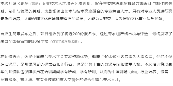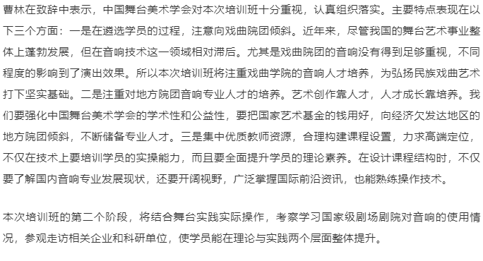 国家艺术基金资助项目《剧场(音响)专业技术人才培养》培训班在京开班