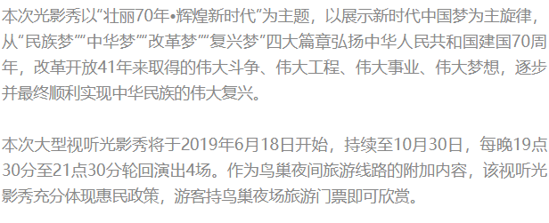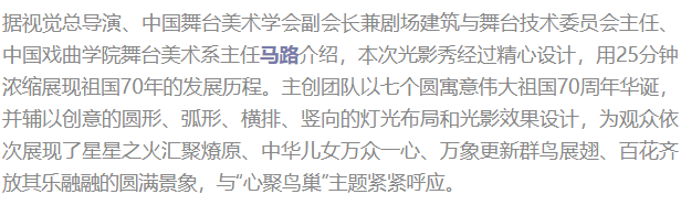 “造梦·鸟巢”首次华彩亮相,声光影齐绘祖国70年壮丽史诗