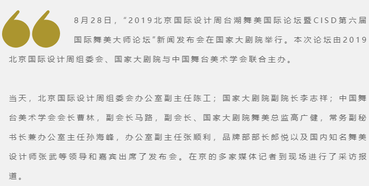 国际舞美大师台湖论道 首次亮相北京国际设计周