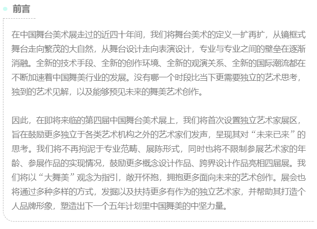 第四届中国舞台美术展将于2020年7月23日至26日在中国国际展览中心(静安庄馆)举办,目前招展工作正在火热进行中。为方便广大舞美企业、艺术院校、社会团体、舞美从业者报名参展,本次组委会在展区分别安排招展负责人,具体联系方式如下: