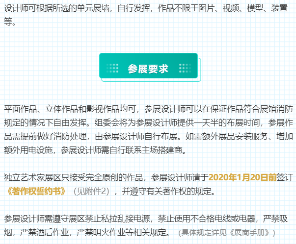 请有意向参展的独立设计师于2020年1月20日之前,将填写的《参展报名表》《著作权誓约书》发送至邮箱:4@cisd.org.cn