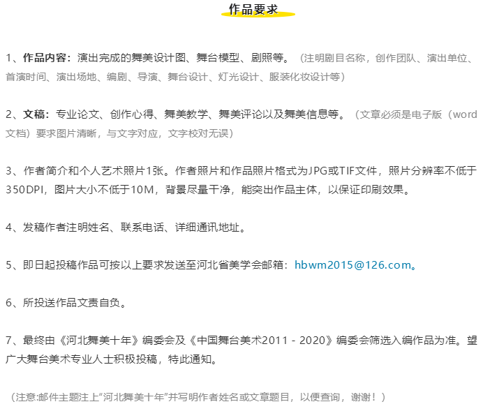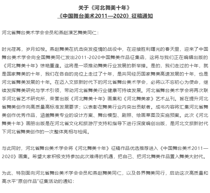 关于《河北舞美十年》《中国舞台美术2011-2020》征稿通知