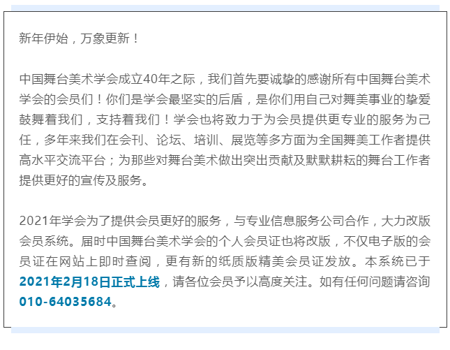 重磅信息!中国舞台美术学会改版会员系统全新上线