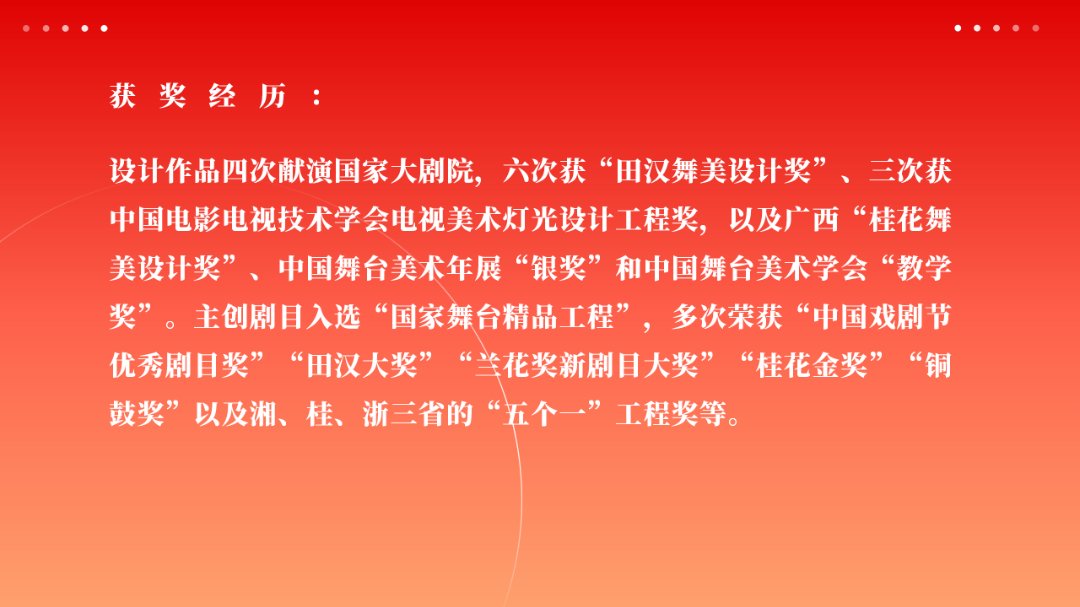 三、人才培养卓有成效。连续举办全省培训班、研修班,以跟踪重点新创剧目合成的实地教学模式,探索人才培养新路径,倾向基层、倾向年轻、倾向综合,关注中青年舞美骨干。