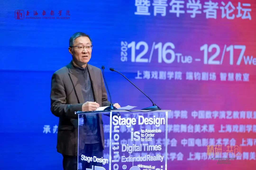 2025年12月16日上午,“精研·共创:第二届数智时代中国舞台美术高等教育大会暨青年学者论坛”在上海戏剧学院端钧剧场盛大开幕。大会由上海戏剧学院、中国数字演艺教育联盟主办,在中国舞台美术学会、中国电影美术学会、上海市戏剧家协会学术支持下,联合上海戏剧学院人事处、上海戏剧学院舞台美术系、上海戏剧学院“AI+演艺”综合实验室共同承办,上海舞台美术学会、上海市剧协舞美专委会协办。