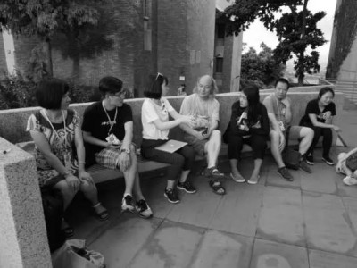 WSD2017期间,中央戏剧学院教授刘杏林与伦敦中央演讲与戏剧学院学生扬心砚等来自不同院校的学生在台北艺术大学关渡美术馆进行交谈。