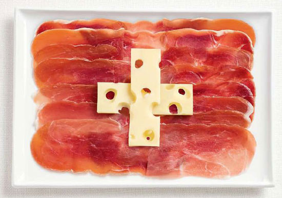 下面是澳大利亚广告公司WHYBINTBWA为悉尼国际美食节设计的一组美食节海报。他们充分发挥吃货精神,选用了每个国家的本土食材打造出各自的国旗图案,三文鱼片是日本,杨桃荔枝红毛丹是越南,青柠凤梨百香果是巴西,番茄肉酱派是澳大利亚……