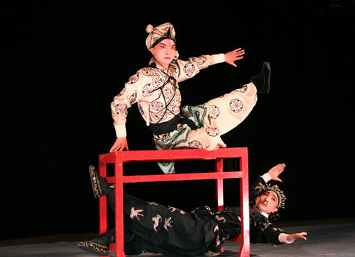 灯光是舞台唯一表现“动态”的因素,因此它与表演的协同最强、最直接。灯光与音乐、音响相互之间必须和谐一致,在戏曲舞台上灯光的巧妙处理,充分表现了演员程式与虚拟化的表演体系,又合乎逻辑的体现了景物以时空的气氛,同时还体现了戏曲虚实结合的写意手法,具若有若无的审美特点,在戏曲中《三岔口》灯光处理完全用的是白光,在这里要比设计一个伸手不见五指的舞台效果要好得多,它是一种意境美;如《乾坤带》这类戏的特点是富丽堂皇,服装、头饰精美,珠光宝气,这种戏的灯光处理多用于白光居多,这里用的白光是具有传统文化意蕴的舞台艺术,它表现了一种古装戏曲的形式美;又如当今戏曲舞台上,在现代戏和新编大型历史题材剧目中的演出中,运用的灯光处理,使剧目在现场演出气氛中,突出人物中都起到点石成金的作用。