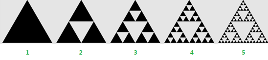 图 1 Sierpinski谢尔宾斯基三角形前五次递归