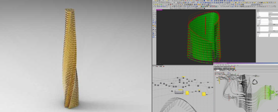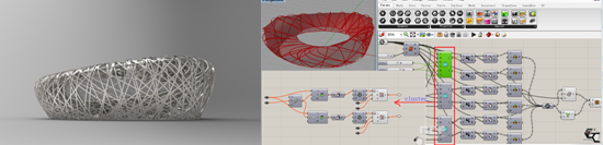在以往的空间设计中,软件仅仅是作为展现最终设计成果的绘图工具,并未真正地参与到设计过程中去。面对复杂的造型设计,可视化建模工作量过大,调整和比较方案需要耗费大量的时间,这使得设计师在方案的选择和比较上往往要作出妥协,除此之外,有价值的数据和随机变量也无法直接参与到造型生成的过程中。因此,设计软件的低技术运用,已经成为限制造型设计的最主要因素。而参数化设计的应用,能够取代以往基于纯视觉的非理性设计,通过简单元素的逻辑组合,创造出复杂的几何形态,同时也为设计提供了可适应性的调整空间。
