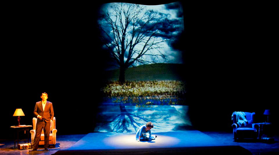 作为一出新媒体舞台剧,多媒体技术在《爱情书简》中扮演了非常重要的叙述角色,尤其是老年安迪的大量回忆需要以多媒体手段进行呈现,多媒体同时也起着环境符号和心理空间形象化的作用。