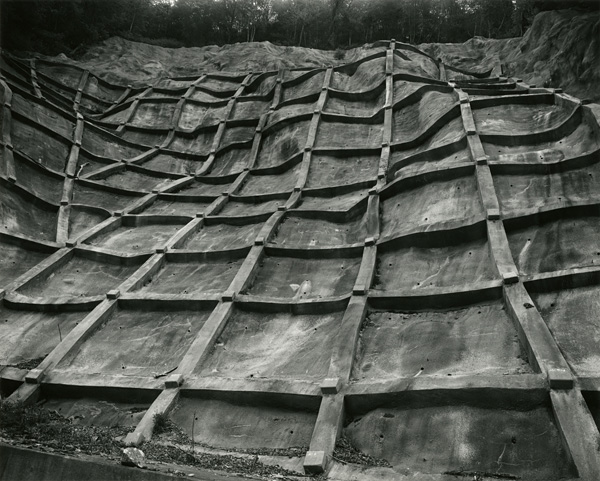 展示了被夷平的山地斜坡如何被涂上石料成为牢固的水闸。