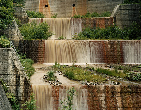 水流沿着陡峭的水泥悬崖飞泻而下,让人觉得眼花缭乱,似乎是一道风景线,实际上,此时自然界已固定地转变成为水流的对抗者。