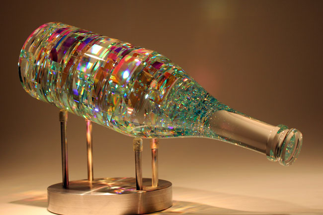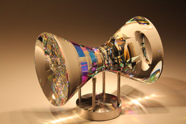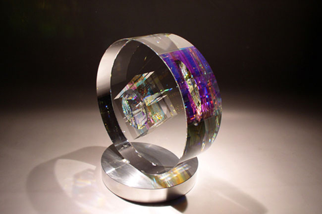 要完成光学雕刻作品不容易,Storms 先到 New Hampshire 学习玻璃冷加工的过