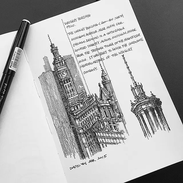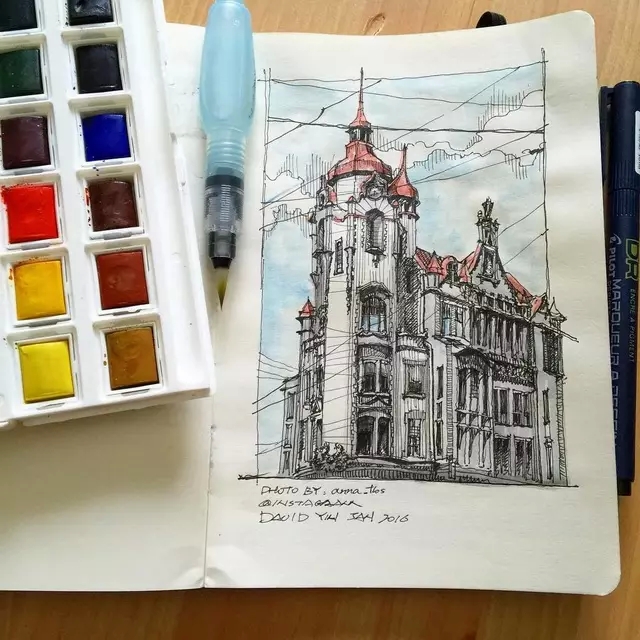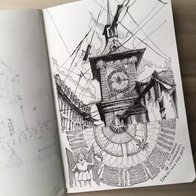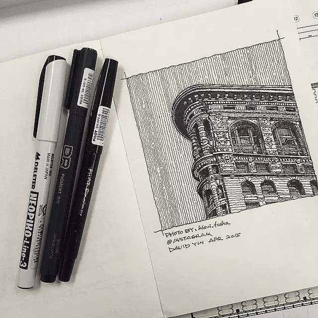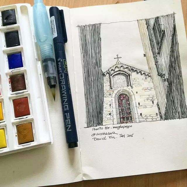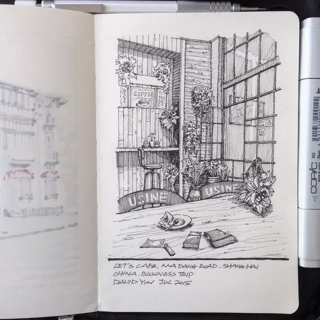 一组室内设计师兼业余摄影师David Yin带来的随身钢笔画速写,一幅幅轻松精致的小画记