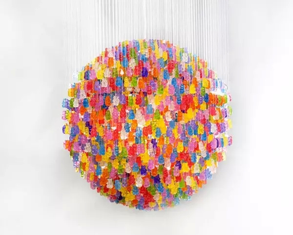 一定不能让小孩子见到这灯,否则非哭着吵着要把它吃掉不可,多彩的糖果吊灯真的太童趣了,不知道这是用什么材质做成的。