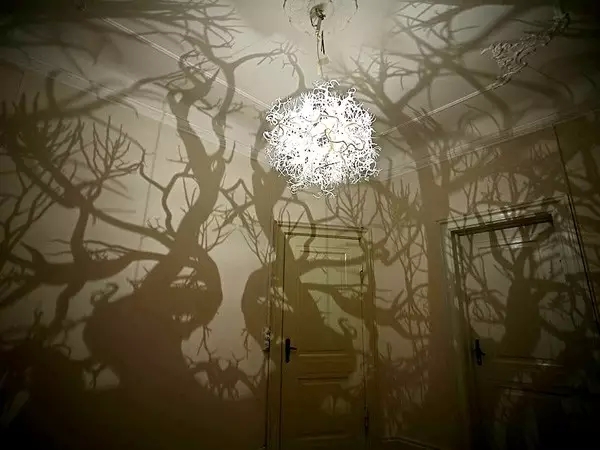 同样是利用光影原理,投影在墙上的枯树枝影子太逼真,好诡异的感觉。分分钟体验惊悚片的场景。