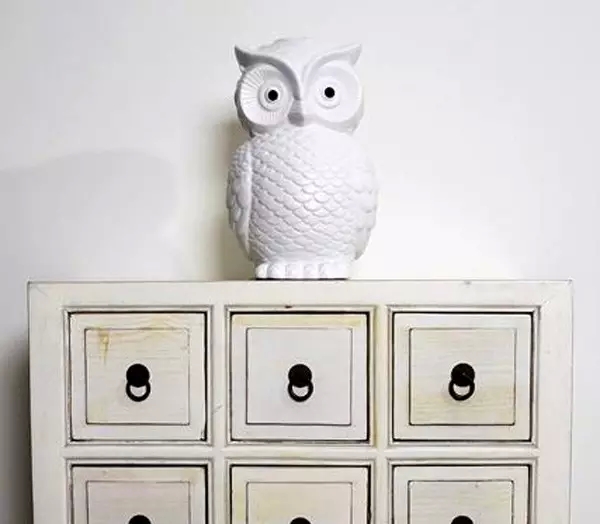 以洁白的陶瓷做成的猫头鹰灯,站在桌子上好像随时在照顾你一般。