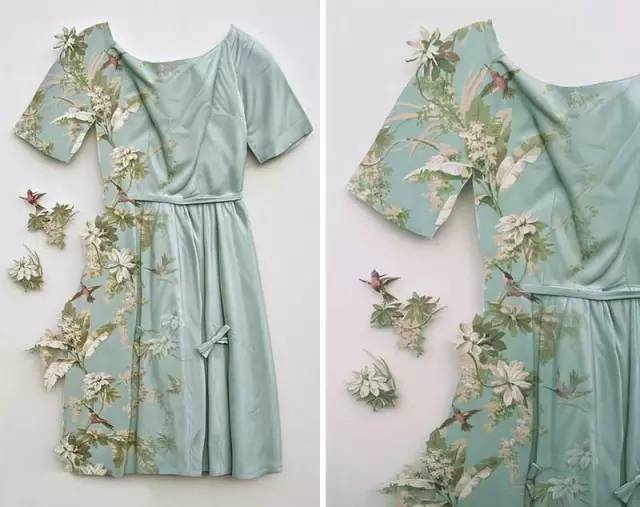 明明有着衣料的光泽和褶皱,细节丰富多彩、连衣服上的刺绣都非常生动,看起来甚至有一种柔软的感觉,可却偏偏拥有坚硬固定的形态。树叶、花朵等植物则在它们上面生长出来,这堆衣服上好像发生了什么魔法或是奇迹。 这是艺术家Ron Isaacs创造的视觉幻象。