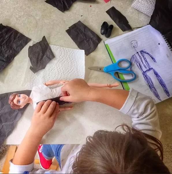原来5岁的女儿已经有了自己的审美世界。居然能用彩纸做出了几乎一模一样的衣服!