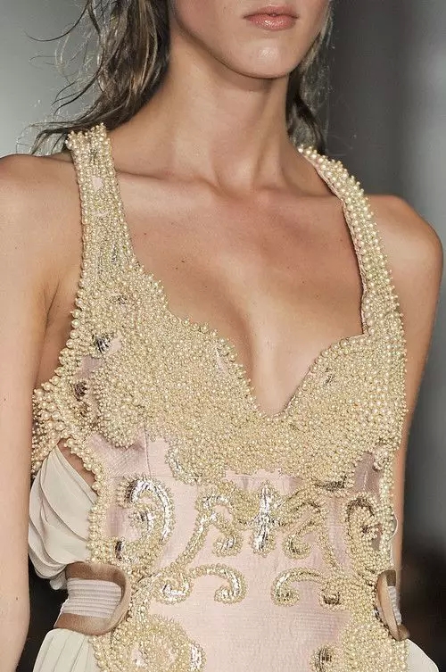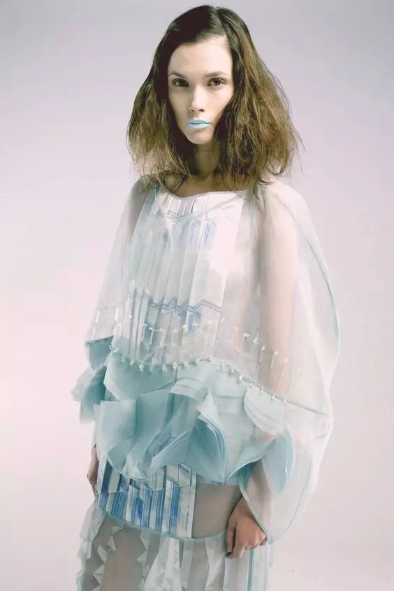 但是从总体上来讲,优质、高档的面料,大都具有穿著舒适、吸汗透气、悬垂挺括、视觉高贵、触觉柔美等几个方面的特点。我们仍会发现,在现代时装设计领域,一件成功的作品除了款式造型、服饰色彩外,面料的运用和处理越来越突显出它的重要性。面料形态设计不仅是材料风格的再现,还是服装设计师观念的传达、个性风格的表现。