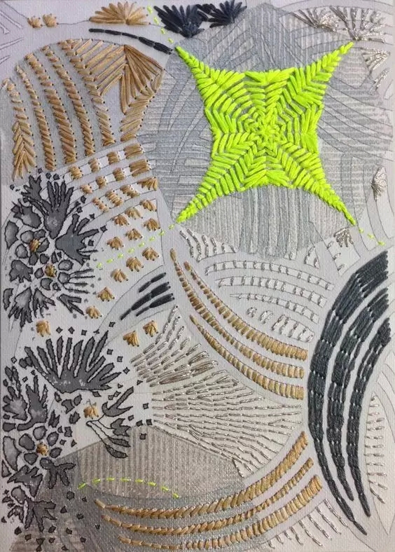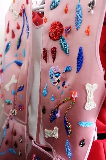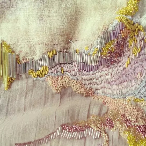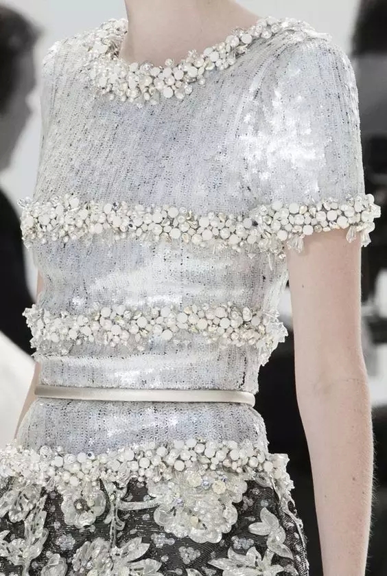 一般是用单一的,或两种以上的材质在现有面料的基础上进行黏合、热压、车缝、补、挂、绣等工艺手段形成的立体的、多层次的设计效果。如:点缀各种珠子、亮片、贴花、盘绣、绒绣、刺绣、纳缝、金属铆钉、透叠等多种材料的组合。