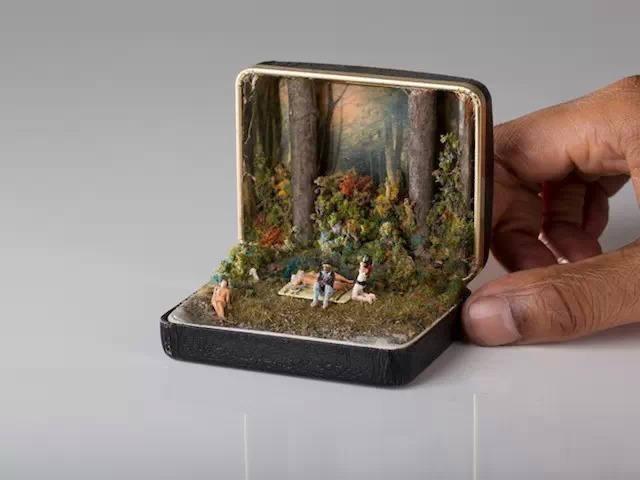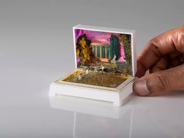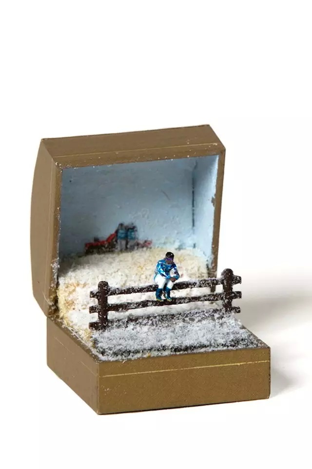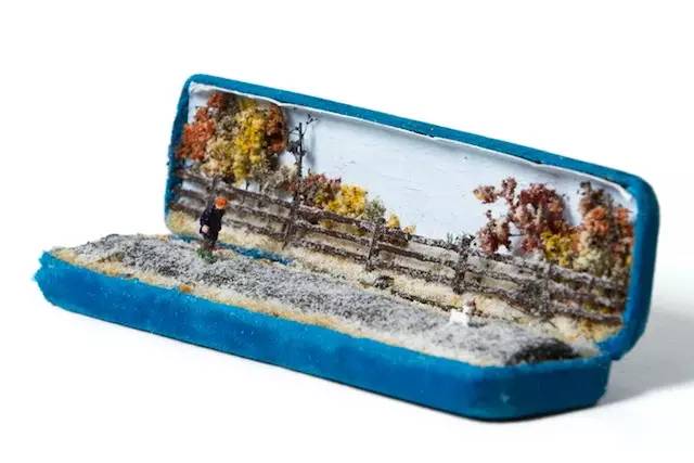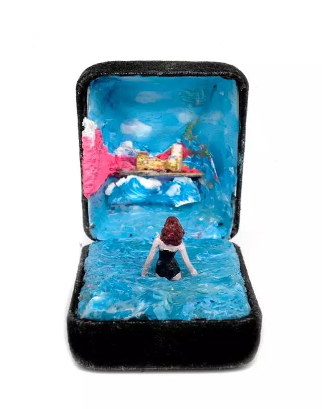 在戒指盒中,放入不同的场景和人物,创造出有如一盒一世界的小小天地。