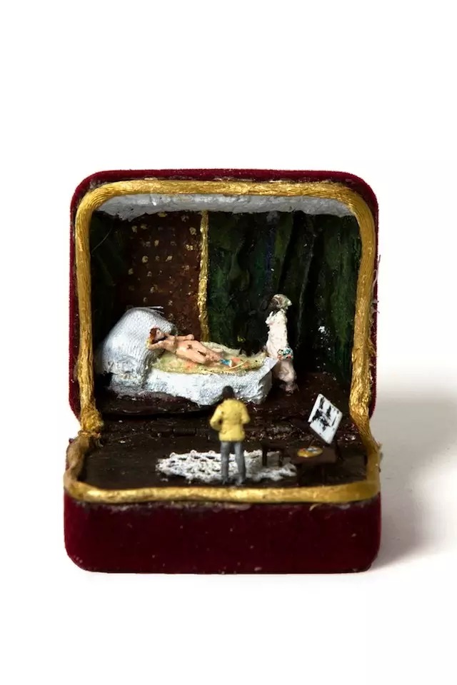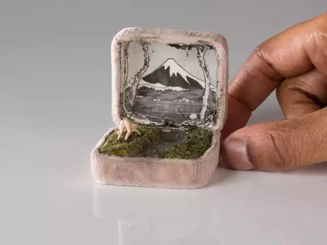 Talwst 用来创作的戒盒来源除了古董市场和eBay外,还包括支持他的粉丝们。粉丝们将旧的戒指盒寄给他,样式老旧却颇有味道,而Talwst则透过戒指盒,开启他们对生活的想像空间,即使盒中世界不大,却拥有想像之外的超大视野!