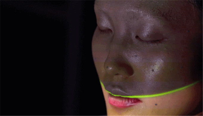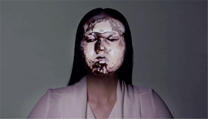 来自日本的Nobumichi Asai团队,更是不惜累断了几万跟头发,做出了Omote技术。精准的根据贴在人脸上的传感器,将影响投射到人脸上。此等技术如果一旦普及到时尚界去,恐怕设计师和造型师应该都玩疯了吧!