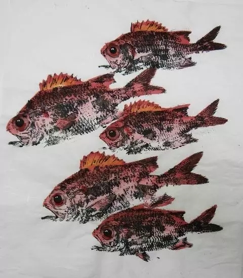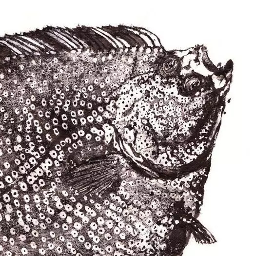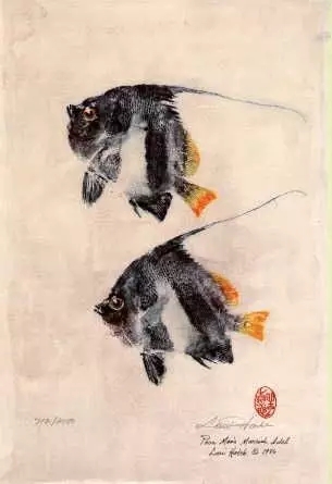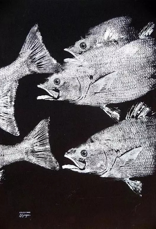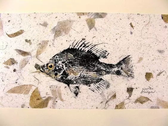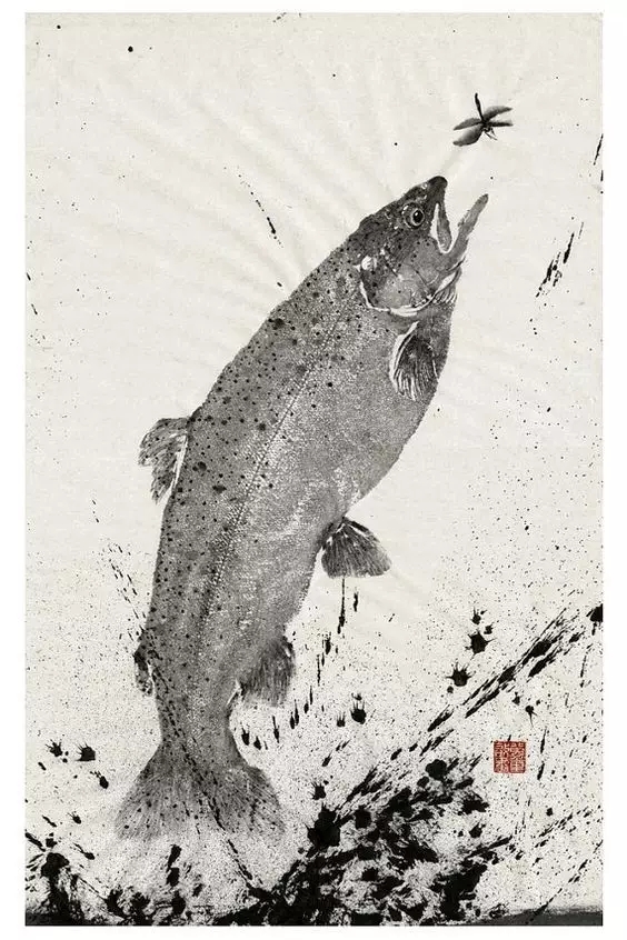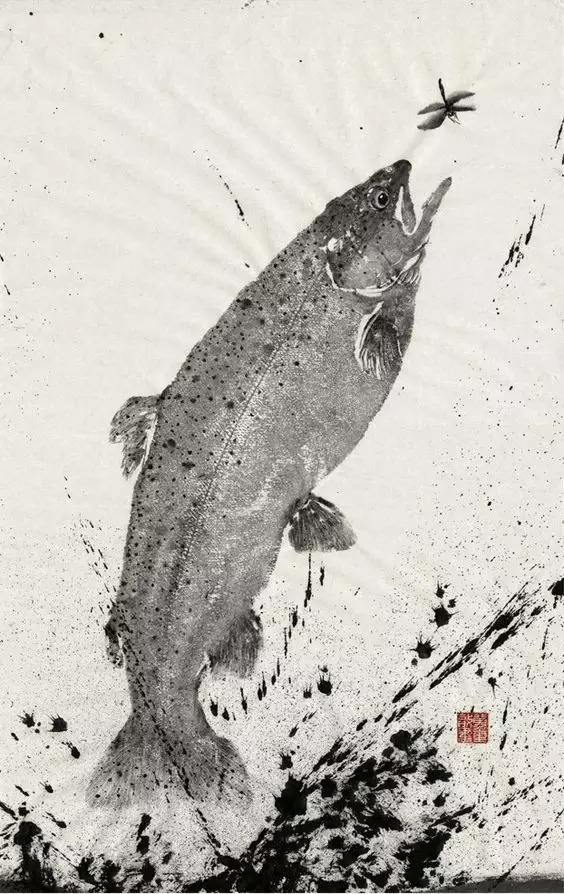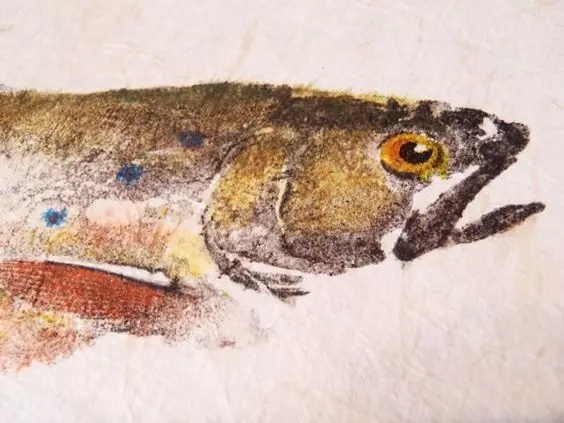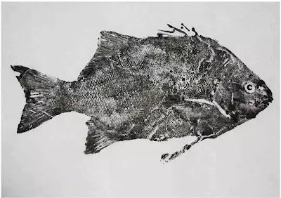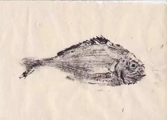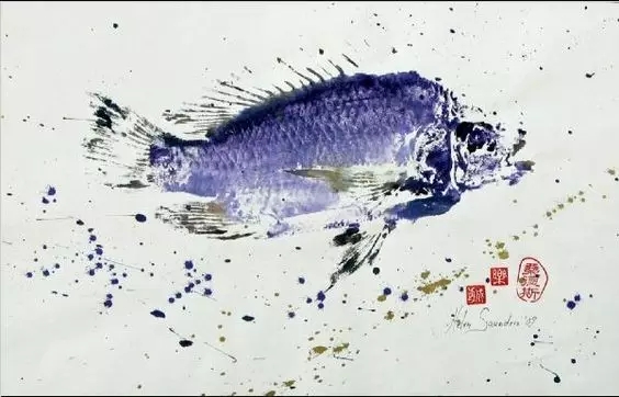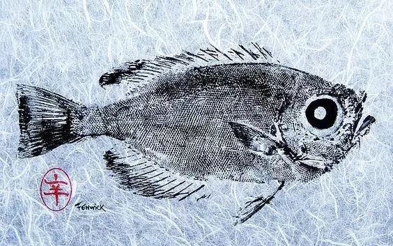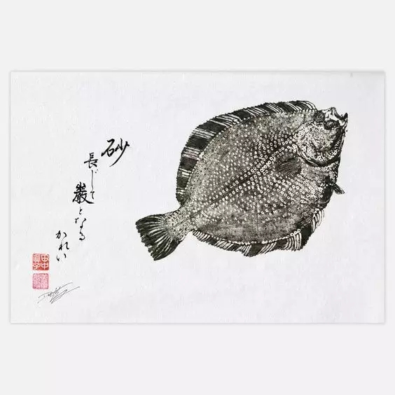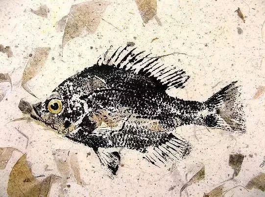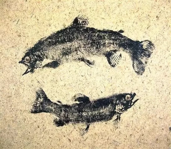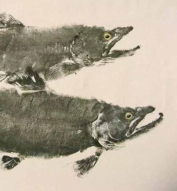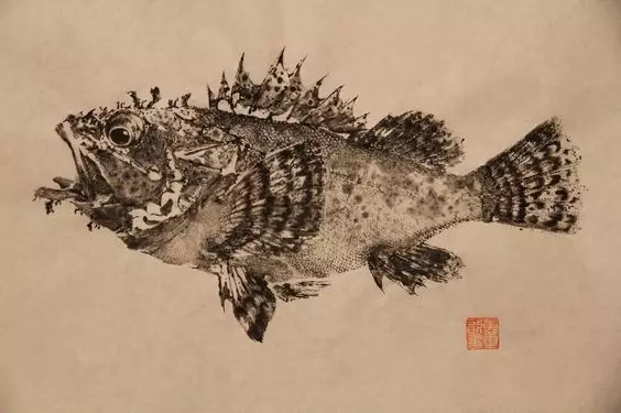 鱼拓是将真鱼的形象用墨汁或颜料拓印到纸上的一种艺术,灵感源自中国古老的碑拓技艺。