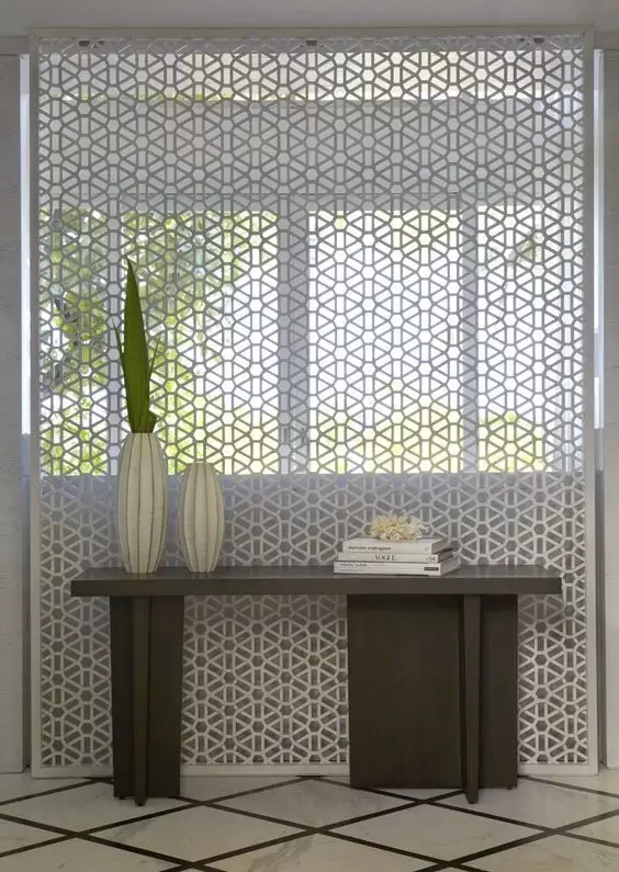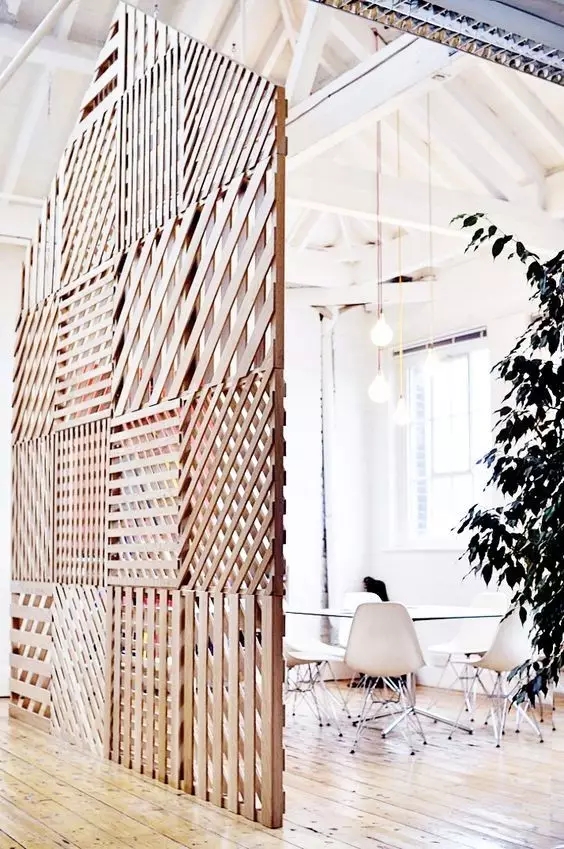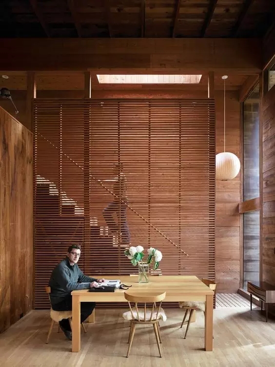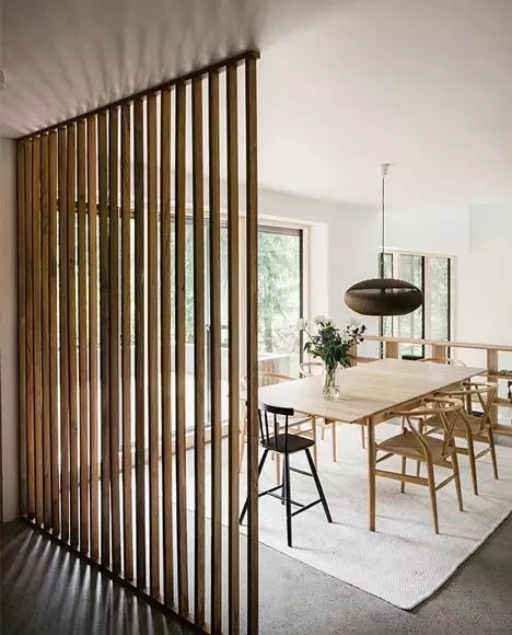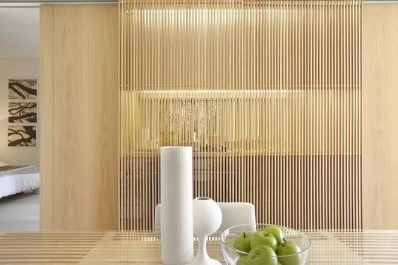 空透式隔断的主要作用是划分空间,有些空透式隔断也有隔音、遮挡视线的作用,但从总体看不是主要的。用空透式隔断来划分室内空间,可以产生丰富的空间效果。与采用隔墙相比,能增加空间的层次和深度,创造一种似隔非隔、似断非断、虚虚实实的意境。