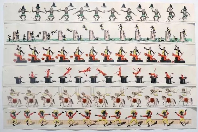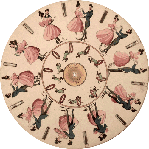 19世纪,艺术家们凭借光学工具,诸如西洋镜、转盘活动影像镜、幻影转盘以及其他一些名字稀奇古怪的小家什让自己的图画变成活的。