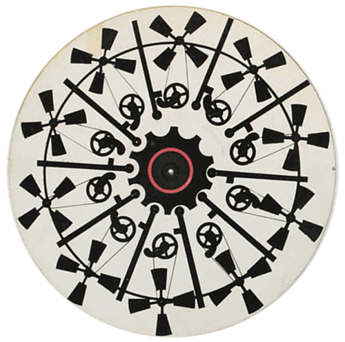 观看者需要站在一面镜子前。当他透过裂缝向里看时,要同步转动圆盘,圆盘上的图案也随之绕着轴心转动。当图案经过裂缝时,就形成了百叶窗似的效应,静止的图案遂变成了循环的动画。