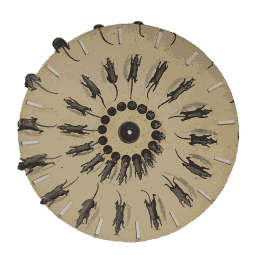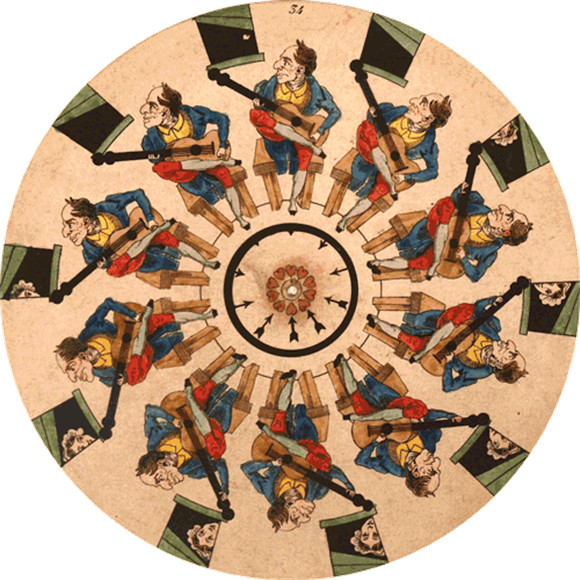 Buzzfeed网站曾上传了第一张猫咪的GIF图,而距此150多年前,人们已经被循环动画深深吸引。当然,那时还没有PS和截屏来制作GIF图像,也没有Tumblrs和Twitter来分享这些精彩的作品。不过,艺术家们凭借着光学工具,诸如西洋镜、转盘活动影像镜、幻影转盘以及其他一些名字稀奇古怪的小家什将自己的图画带入了生活。