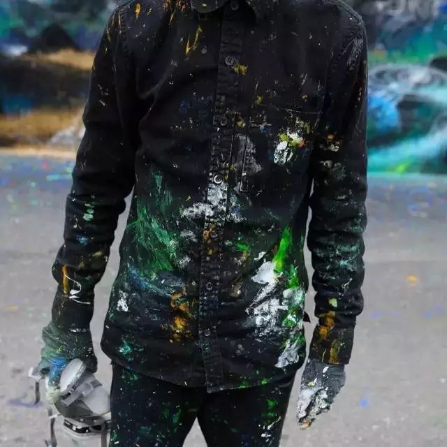 只要是作画的时候,陈英杰的衣服、手套就总是脏的